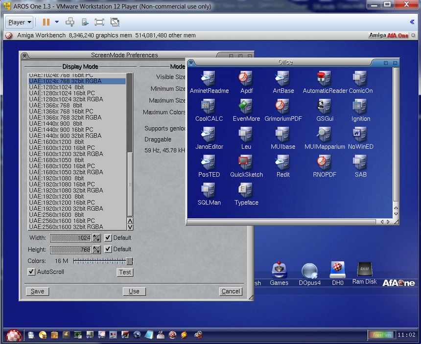 - RTG emulation works and I was able to run on a custom screen.