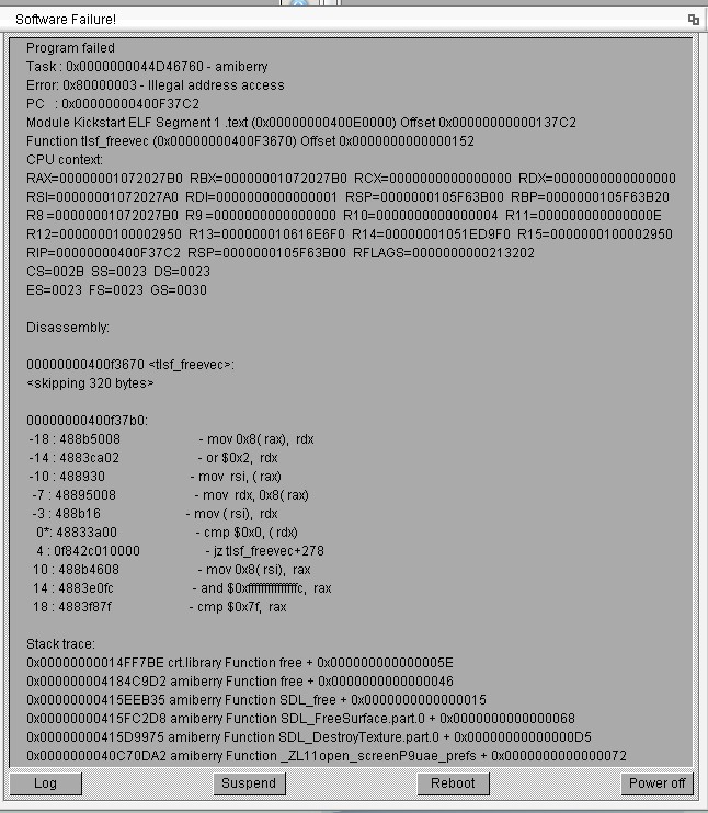 Also amiberry will allocate the NATMEM_SIZE size, if specified, in a single big chunk of memory, if 32bit memory is "fragmented" due to previous usage it will crash, using NATMEM_SIZE=1024 will work if used after an avail FLUSH?