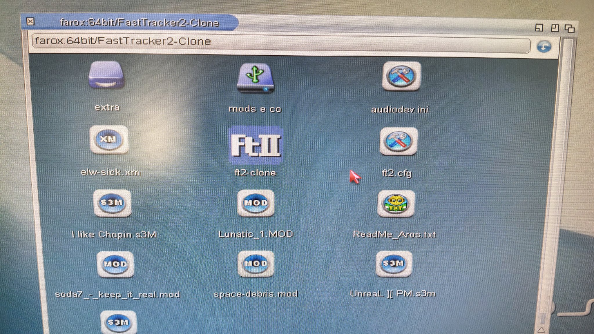 FT2Clone che non può essere usato come strumento, salvo non si utilizzi il parametro "CLI" nel Tooltypes, che però a sua volta non può caricare il file di configurazione FT2.CFG.